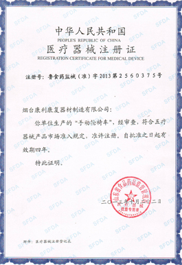煙臺康利康復器材制造有限公司成立于1993年。公司自成立以來一致致力于手動輪椅車、電動輪椅車、手搖三輪車、手動護理床、電動護理床、座便椅、洗浴椅、助行器、拐杖等康復輔助器具的研發、生產和銷售。經過20多年的不懈努力,我們先后研發和生產了130多個品種的康復輔助器具,產品銷售覆蓋國內95%以上的省市自治區,國外十多個國家和地區,得到了各級政府及最終用戶的信賴與肯定。公司于2000年起先后通過了IS09001質量管理體系認證、IS013485醫療器械管理體系認證、1S014001環境管理體系認證、職業健康安全認證、售后服務五星級認證、歐盟CE安全認證等。